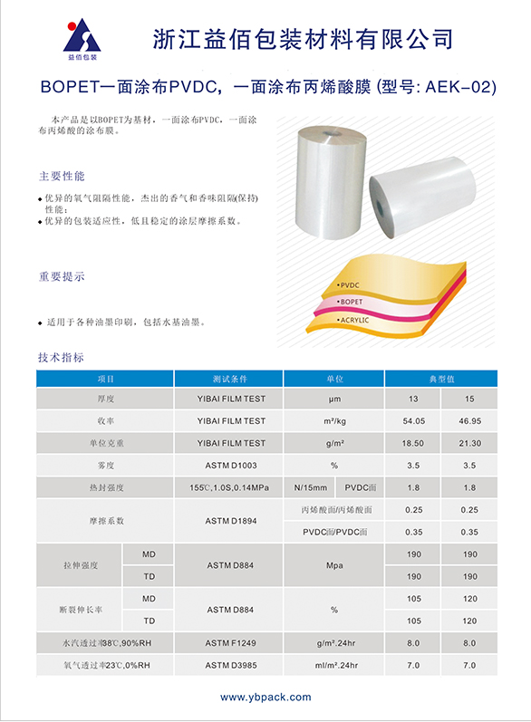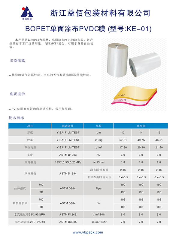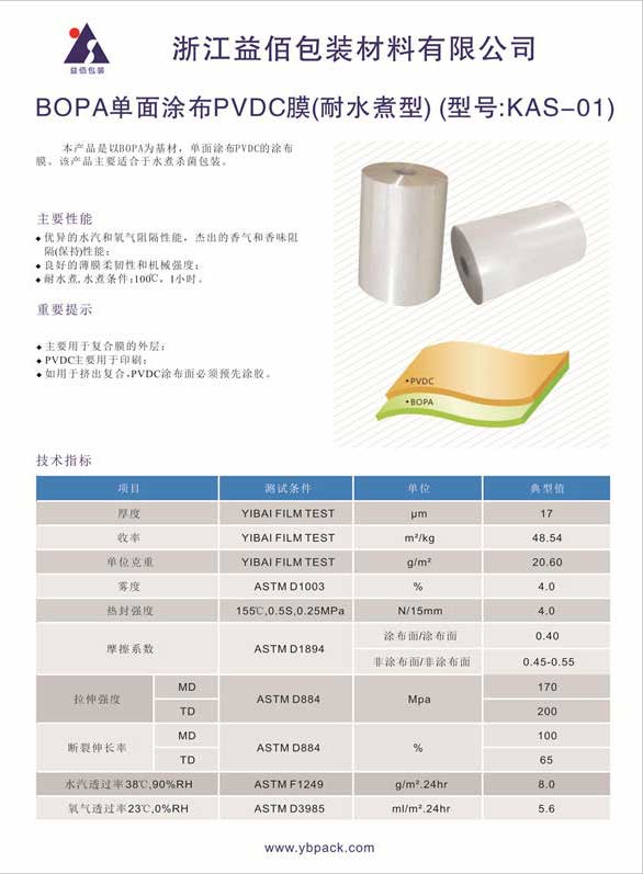 產(chǎn)品性能: 高阻隔性、優(yōu)異的保香性; 良好的印刷性、復(fù)合性; 優(yōu)異的抗穿刺強(qiáng)度; 耐100攝氏度水煮,不發(fā)白。 產(chǎn)品應(yīng)用: 與PE或CPP復(fù)合特別適用于火腿、魚干、 海產(chǎn)品、水煮食品、油包等食品包裝。